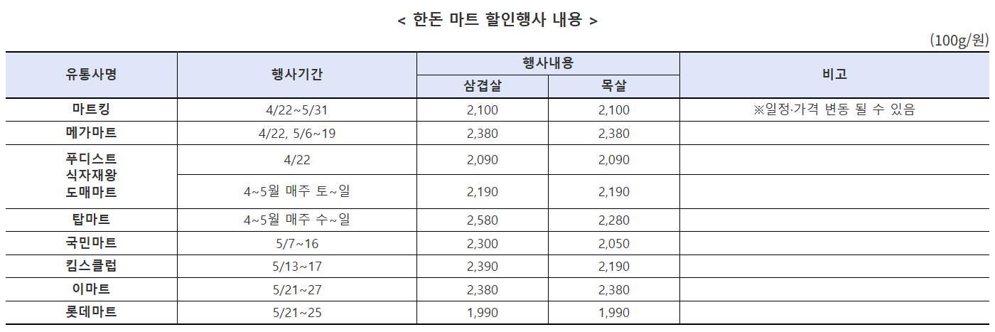 - 할인 내용 : 국내산 돼지고기 할인 지원