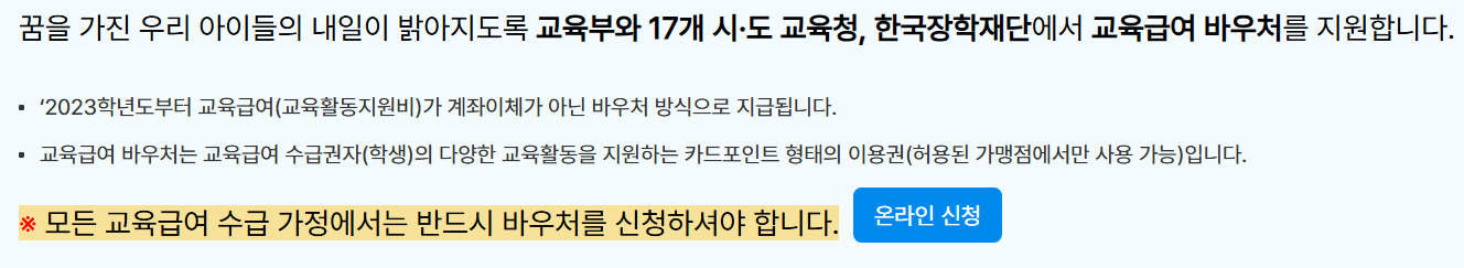 교육급여바우처는 자동 지급이 아닙니다. 반드시 신청 절차를 거쳐야 합니다.