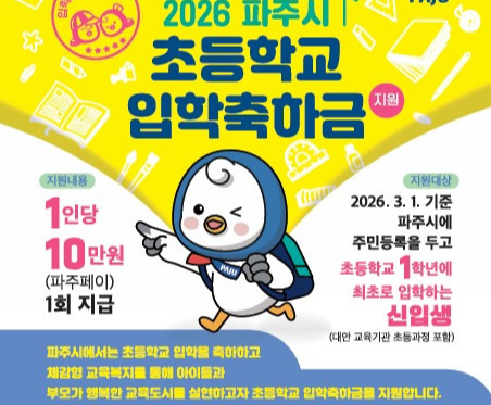 ✔ 사업명 : 2026년 파주시 초등학교 입학지원금
