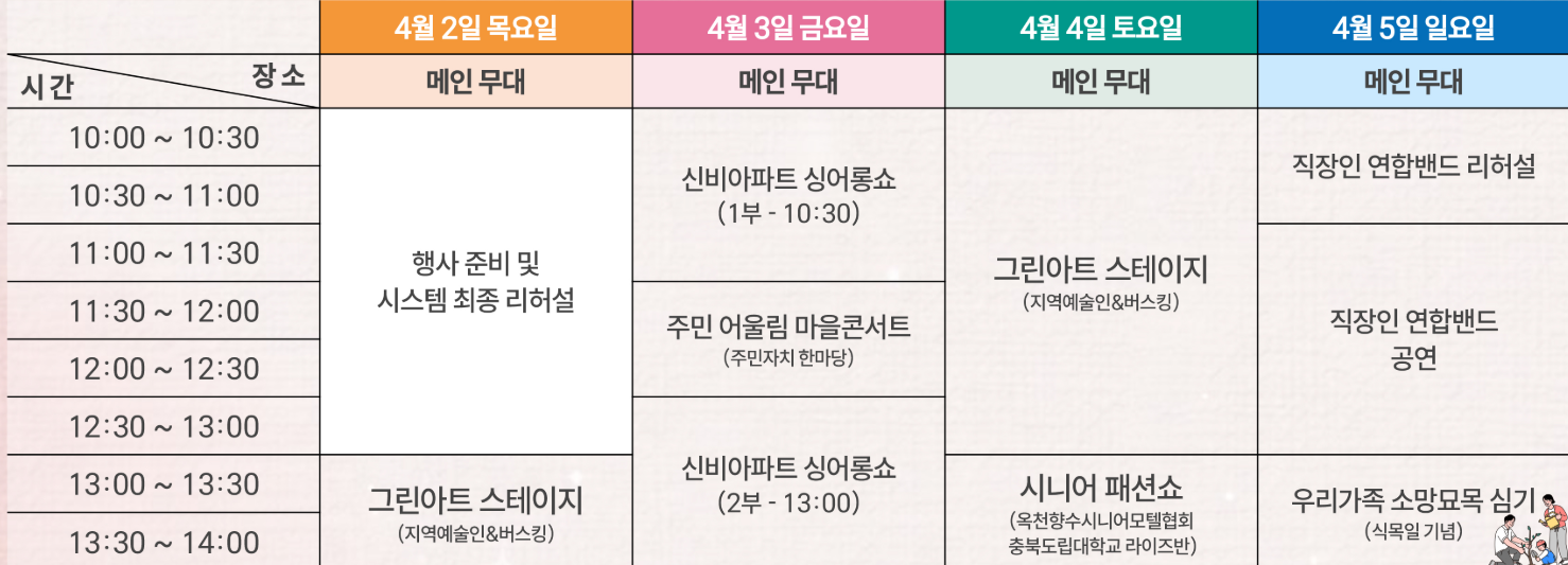 - 행사 장소 : 충청북도 옥천군 이원면 묘목 단지 일원(옥천묘목공원)