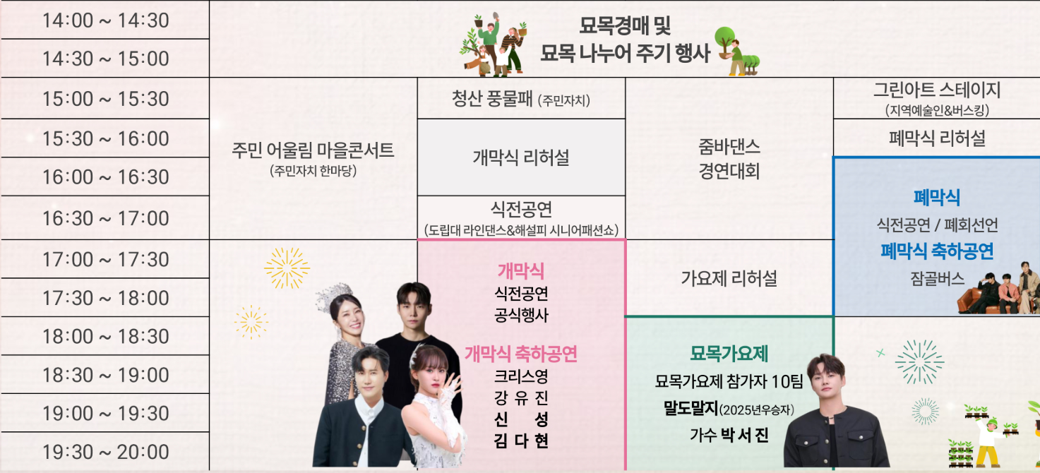 묘목 나눔 행사는 축제 기간 중 오후 2시~3시에 진행됩니다.