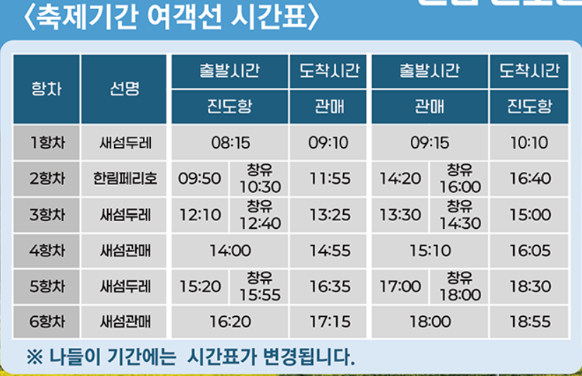 - 배편 사전 예약 필수