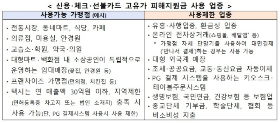 - 사용 제한 : 온라인 쇼핑몰·유흥업종 등 제외