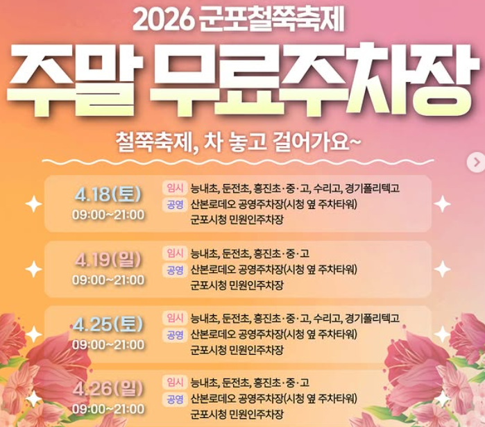 올봄 인생샷과 힐링을 동시에 원한다면, 군포 철쭉축제는 반드시 방문해야 할 곳입니다. 지금 바로 일정 저장해두세요.